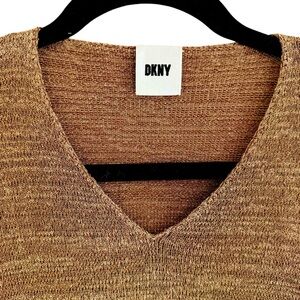 DKN Transfer Rib Women's V-Neck Brown Sweater Size M