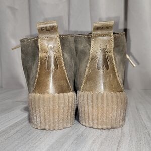 FLY London Olive Green Suede Leather Ankle Boot Bootie Wedge Heel Sneaker Sz 7.5