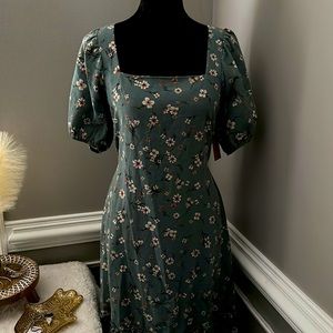 Just Found Floral Sage Green Cottage-core midi dress. NWT. Pretty cut-out open details in the back. Square neckline! Balloon elasticized 3/4 sleeves. ๐ฟ