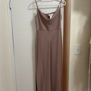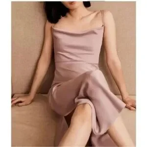 An elegantly draped cowl neckline completes the BHLDN Cali Satin Midi Dress. With a modern midi silhouette, the silky slip dress falls gracefully, ending with daring slits on either side - a stunning choice for bridesmaids and wedding guests alike.