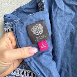 Vince Camuto Blue White Embroidered Tassel Eyelet Summer Resort Size 8 / Medium