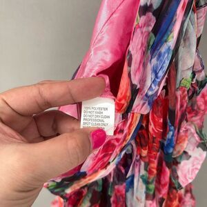 Features: Ethereal ruffles and striking cutouts accentuate the captivating silhouette of this vibrant floral gown.