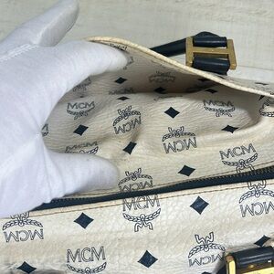 This bag shows signs of use, as seen in the photos. The exterior has discoloration but no peeling, and the corners show rubbing but remain intact. The metal plate and zipper has tarnish. Overall in fair condition.