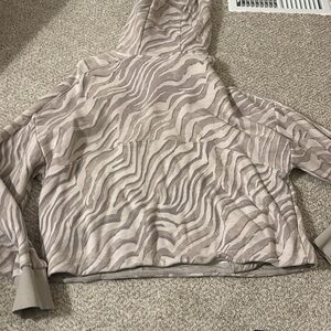 Sweaty Betty Cropped Hoodie in Ivory Tiger Print Medium