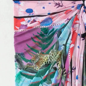 Multicolor Women's Tropical Print Knot Side Cover Up Skirt