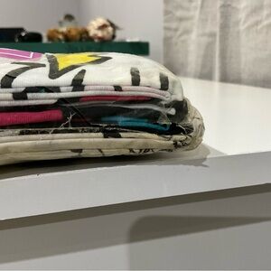 This is a pack of four Disney assorted pillowcases new in package. The front says “One for the money, Two for the Show, Three to get ready, and Four to go”, but I do not know what the designs are on the pillowcases. The package does say Mickey, Minnie, Donald, and Goofy so I am assuming it is a pillowcase of each characters in the package. They are standard size.