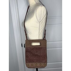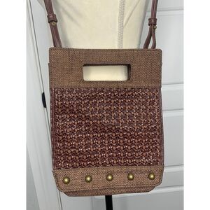 Anthropologie Crossbody Bag Womens Brown Woven Adjustable Handle Spacious Beach