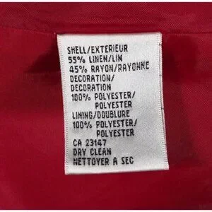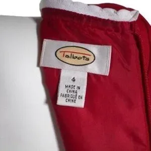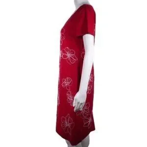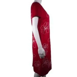 This stunning Talbots dress features a vibrant Asian floral pattern in a rich red and white color palette. The linen blend fabric and short sleeves offer a comfortable fit, while the lining ensures a smooth silhouette. Perfect for any occasion, this dress is a stylish addition to your wardrobe.