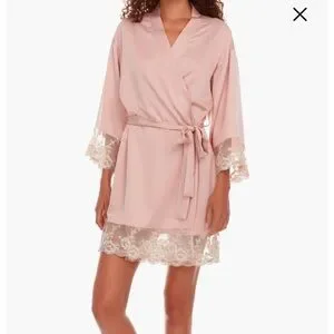 NWT Flora Nikrooz Smokey Rose Satin Robe women’s size Large