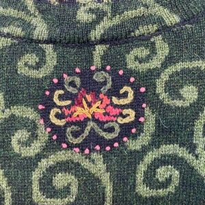 Icelandic Design Small Wool Sweater Jacket Full Zip Cardigan Embroidered Green