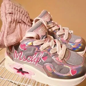 If you know, you know! MSCHF has never been a brand that keeps things "ordinary"! From the Super Normal to the Big Red Boot, MSCHF keeps everyone on their toes! In December of 2023, MSCHF came out with Super Baby, available in 3 styles, Ollie, Oscar, and Olivia. The chunky silhouette has baby shoe proportions on an adult-sized shoe. The size I am selling is a size 8, and they were only worn once to take pictures in. They are truly in LIKE NEW condition, as you can see from the pictures. These shoes went viral all over social media and in less than a week from their debut, they were sold out! These shoes are only available on resale sites and, I only found three pairs. This shoe is the Super Baby Olivia, sporting big Barbiecore vibes. The Olivia's are dressed in gray with iridescent silver accents throughout! To finish the look, pink hearts and MSCHF branding are on the lateral sides. Each pair sits atop a chunky sole paired with fat laces. I am also including the matching pink socks to complete the look. This company is extremely high-end and has colabs with many big names! If you want to know more, feel free to check out the viral videos with these shoes. I will leave you with this quote straight from MSCHF regarding these shoes, "Often the most sartorially-dunked-on one can be is when confronted with a Baby who is better dressed than you. Baby shoes look great, but babies grow so fast it's pointless to buy them shoes. So buy them for yourself with the Super Baby!
