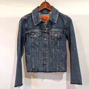 Levi's Cotton Denim Jeans Jacket with Lace Up Tie Details on Cuffs Size XS