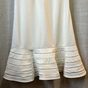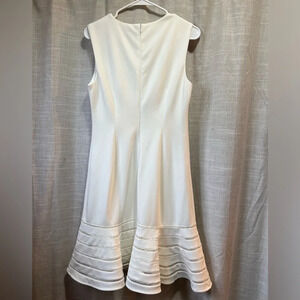 Stunning classy white Calvin Klein dress with Flounce Skirt detailing. Zipper down back for easy wear.