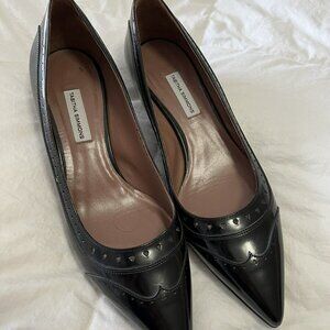 Black Tabitha Simmons Black Leather Kitten Heels~ Size 37. Wingtips
