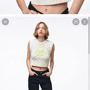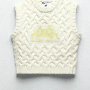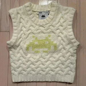 ZARA Limited Edition Chunky Cable Knit Space Invaders Sweater Vest - Size S