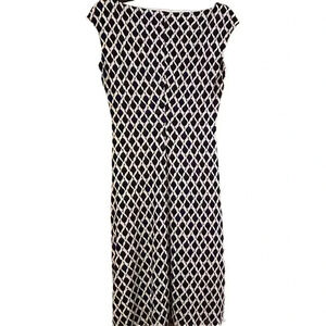 This stunning Ralph Lauren dress is perfect for any occasion, whether it be a party, casual outing, or business meeting. The dress features a unique geometric pattern, 3/4 sleeves, and a high neckline. It's made of high-quality polyester material and has a pencil dress style that flatters the figure.