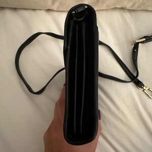 Older style crossbody/clutch from the Robinson collection. Comes with built in spaces and tags for currency, receipts, and passport. The passport space has a removable black passport holder you can place your passport in and safely secure within this bag. Tarnishing on front gold logo and gold chain clasps. Interior is stunning and very clean. Zipper works well. There is some slight structure wear (see in front photo) from storage but sides are in great condition with no peeling. The strap can be removed to make it a clutch/wallet.
