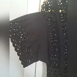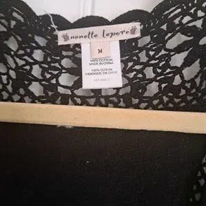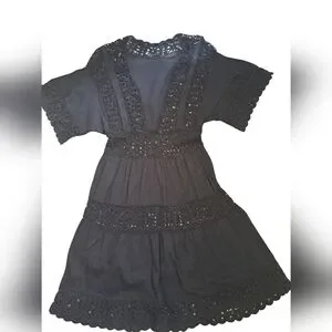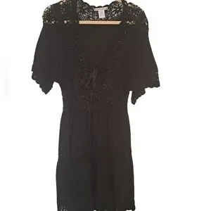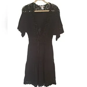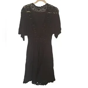 NANETTE LEPORE black cotton crochet knit cut out short sleeve cover up dress M