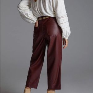 Anthropologie Pilcro The Breaker Cropped Faux Leather Pants Wine Size 27