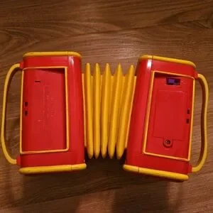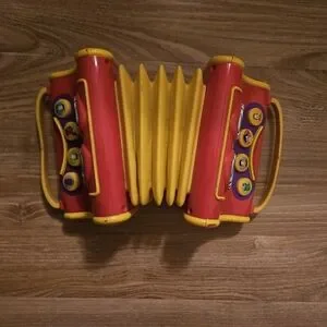 Musical accordion toy instrument from the OG Wiggles era featuring Jeff, Anthony, Murray & Greg, and Dorothy the Dinosaur, Wags the Dog, Henry the Octopus, and Captain Feathersword. Works great, takes AA batteries (will be shipped without for safety reasons)