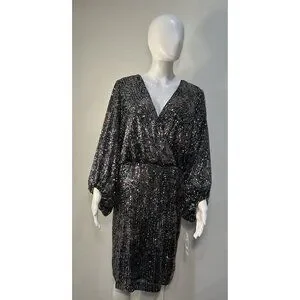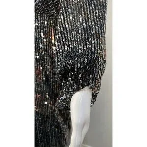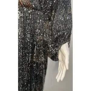 Get ready to turn heads with this stunning R&M Richards bodycon dress! The dress features a sparkly drape back design that is perfect for any formal occasion, whether it's a wedding or a cocktail party. The long sleeves and midi length make it appropriate for cooler weather, while the black color adds a touch of sophistication.