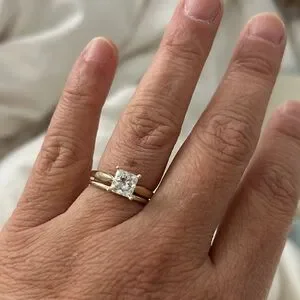 1.5 Princess cut diamond in 14k yellow gold, E, VS1