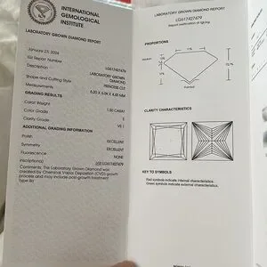 Brand new 1.5 princess cut diamond, excellent cut and polish, E, VS1, perfect diamond ring for engagement, size 7. IGI certified included.