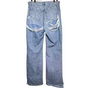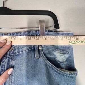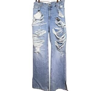 We took everything Khloé loves about our denim and put it into these jeans. These super high-rise jeans have extra-long legs fitted through the hips and thighs, with a vintage-inspired straight silhouette. Extreme distressing adds a bold, edgy, worn-in look. Crafted from signature rigid denim, The Khloé Jean offers a structured, flattering fit with excellent shape retention, even after multiple washes. These are NWOT I modeled them for a live but they are just too big for me definitely made for a curvy girl