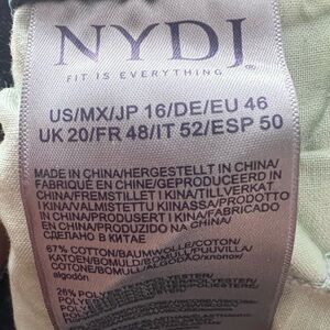 These NYDJ jeans feature a classic denim style with a medium to dark blue wash and subtle fading effects for a worn-in look. The ankle cropped cut adds a modern touch, making them versatile for various outfits.
