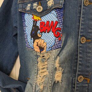 Vintage Y2K Focus Men's Denim Comic Jacket Size XL Blue