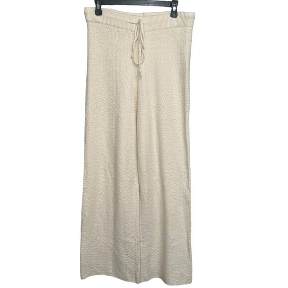 BOHME Cream Wide Leg Pull On Boucle Knit Trousers Women’s Size Large