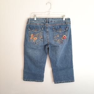 Leemo USA Butterfly Embroidered Capri Jeans