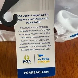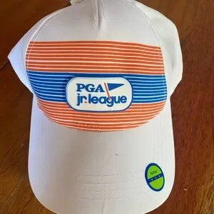 NWT!! Stay cool and stylish on the golf course with this PGA Jr. League white golf hat in adult size. Made from 100% polyester, this hat is both lightweight and breathable, making it perfect for hot summer days. The adjustable strap ensures a comfortable fit for all-day wear, while the solid white color and subtle PGA branding add a touch of class to your outfit. Whether you're a seasoned golfer or just starting out, this hat is a must-have accessory for any golf enthusiast.
