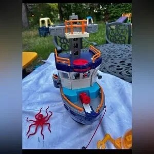 FISHER PRICE IMAGINEXT DEEP SEA OCEAN RESCUE COAST GUARD BOAT includes SUBMARINE, octopus and fish