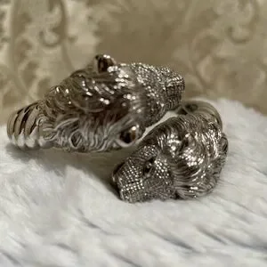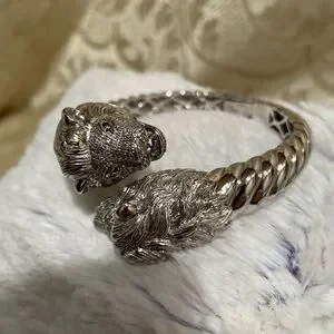 Sterling silver 925 Diamond accents Loins Heads bracelet Hefty in weight