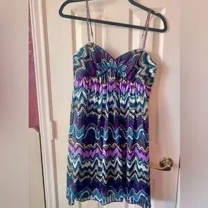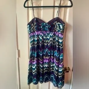 Laundry by Shelli Segal silk dress w/ beaded straps size 4 multicolor Y2K