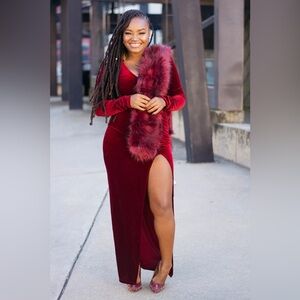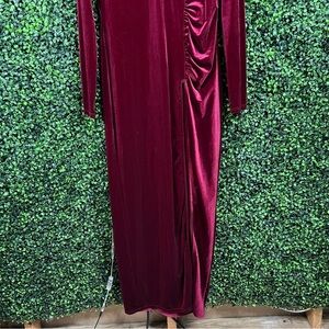 NWT. This elegant dress features a plunging v-neckline, cuffed long sleeves, and a high side slit, perfect for a wedding guest, prom, or night out. Smoke/pet free home.