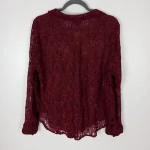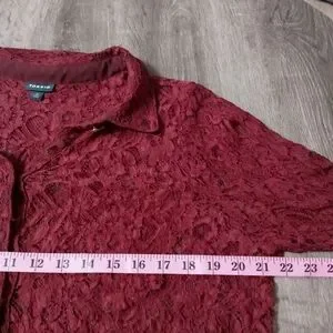 romantic lace Torrid Solid Wine Red Floral Laced Long Sleeved Button Down Shirt 2x