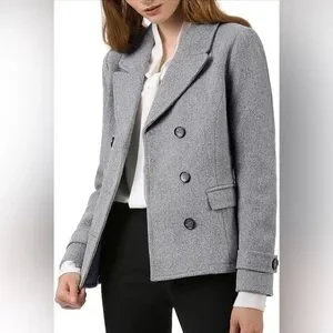 Grey Allegra K Women’s Double Breasted Pea Coat Size XL- never worn! Classic pea coat in a neutral color that for multiple occasions. Great for the cold winter months.