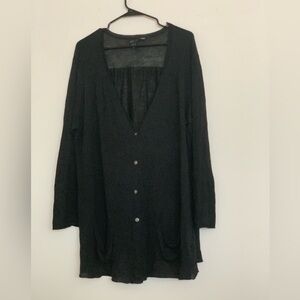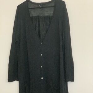 EILEEN FISHER WOMAN 3X Black Italian Yarn Knit Open Cardigan Linen Nylon Blend