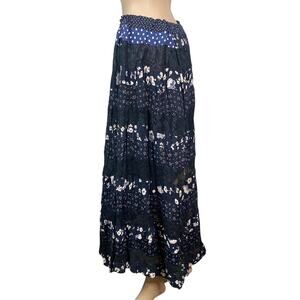 Vtg Floral Polka Dot Lace Tiered Patchwork Peasant Maxi Skirt