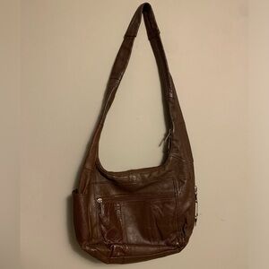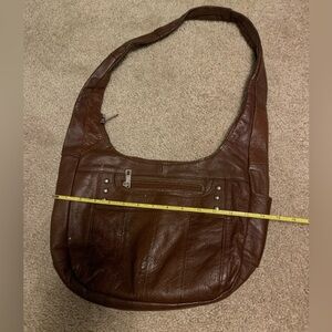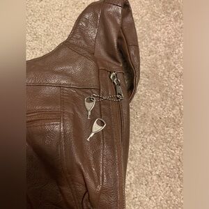 Conceal carry purse. All zippers are in tack, no marks in leather, comes with two keys for lock on conceal carry pocket.
