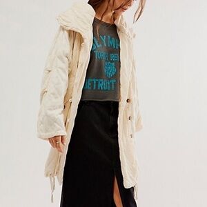 Free People - Oversized Parachute Quilted Ivory Jacket. Size Small.