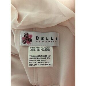 This beautiful Bella Bridesmaids dress is perfect for any formal occasion or wedding. The dress features a solid light pink color with a sweetheart neckline and sleeveless strapless design. It has a zip closure and is made from polyester material that is machine washable. The dress is a size 12 and has a regular fit.