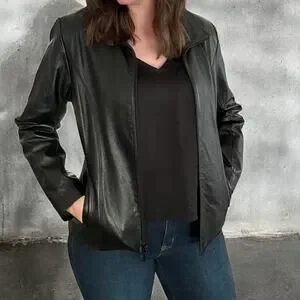 Vintage Wilsons Leather Maxima Black Zip Up Leather Moto Biker Jacket Womens M