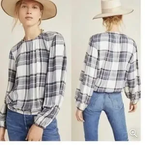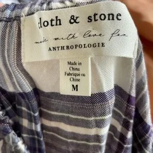 Cloth and Stone for Anthroplogie medium purple & white plaid long sleeved