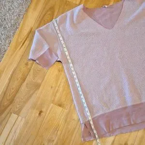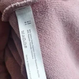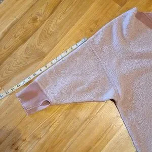 size Small, it's very oversized. measurements shown. side split hems and cuffs. it's a mauve-y pink shade. no stains or holes. in excellent pre-loved condition. gs8016hhag0024 t23
