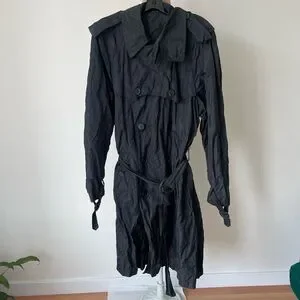 Jean Paul Gaultier 2 Squared Vintage Black Double Breasted Crinkle Trench Coat M