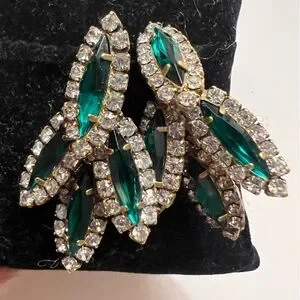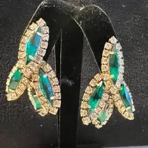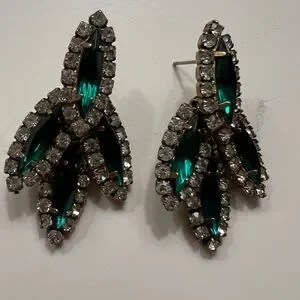 ***HOLD*** Elizabeth Cole Bacall Faux Emerald and Diamond Pierced Earrings