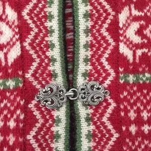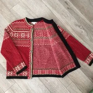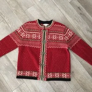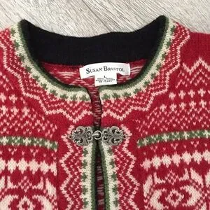 Susan Bristol Women Wool Cardigan Sweater Nordic Fair Isle Metal Clasps Hooks Lg